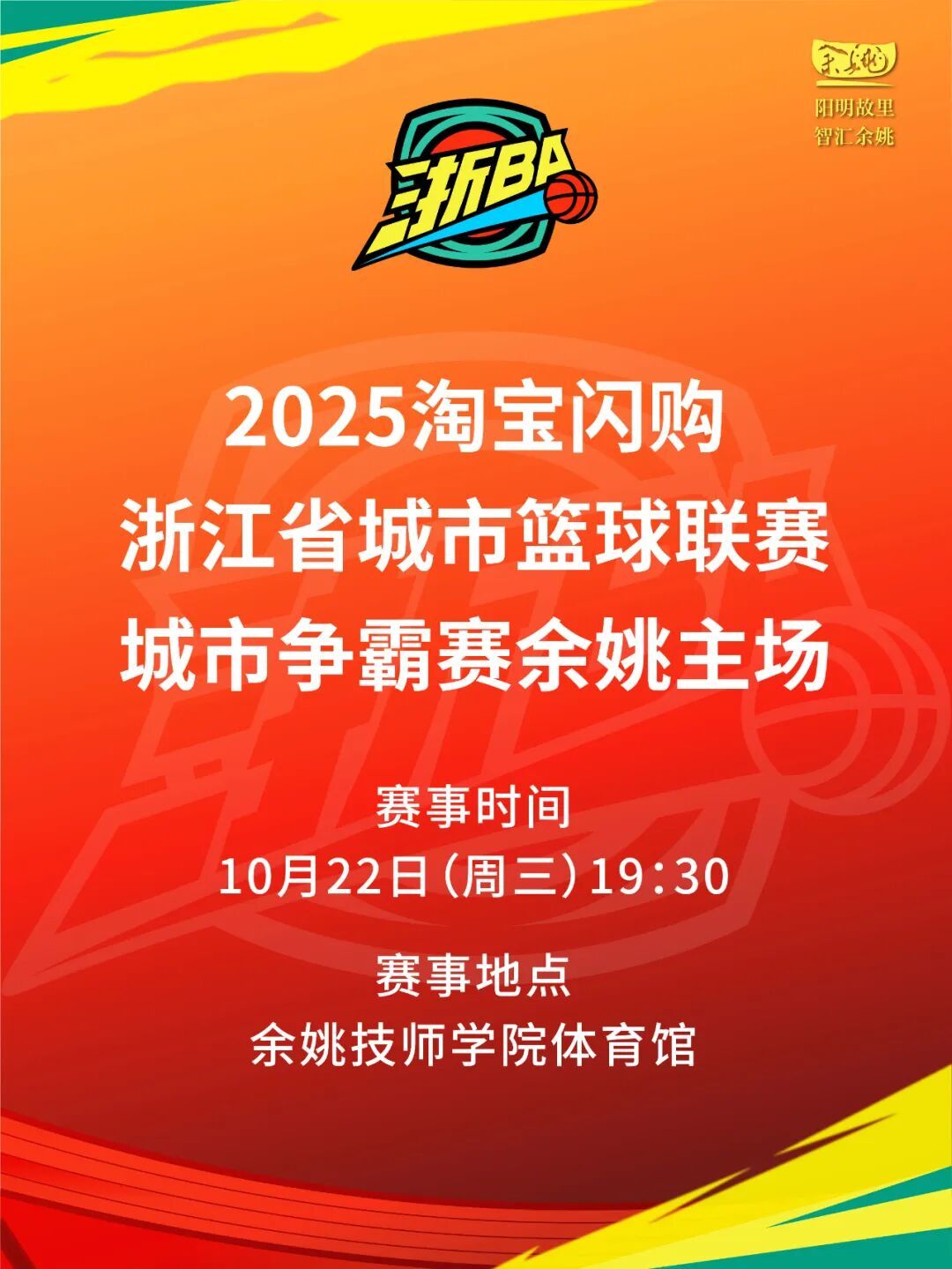 \u003c/p>\u003cp class=\"textAlignCenter\">\u003cstrong>- 賽事介紹 -\u003c/strong>\u003c/p>\u003cp class=\"textAlignCenter\">\u003cstrong>賽事名稱\u003c/strong>\u003c/p>\u003cp class=\"textAlignCenter\">\u003cstrong>2025淘寶閃購浙江省城市籃球聯賽\u003c/strong>\u003c/p>\u003cp class=\"textAlignCenter\">\u003cstrong>城市爭霸賽余姚主場\u003c/strong>\u003c/p>\u003cp class=\"textAlignCenter\">\u003cstrong>比賽時間\u003c/strong>\u003c/p>\u003cp class=\"textAlignCenter\">\u003cstrong>2025年10月22日 19:30\u003c/strong>\u003c/p>\u003cp class=\"textAlignCenter\">\u003cstrong>比賽場館\u003c/strong>\u003c/p>\u003cp class=\"textAlignCenter\">\u003cstrong>余姚技師學院體育館\u003c/strong>\u003c/p>\u003cp class=\"textAlignCenter\">\u003cstrong>參賽隊伍\u003c/strong>\u003c/p>\u003cp class=\"textAlignCenter\">\u003cstrong>余姚隊 VS 杭州隊\u003c/strong>\u003c/p>\u003cp class=\"textAlignCenter\">\u003cimg src=\"https://x0.ifengimg.com/ucms/2025_43/8B0081B9BCA1DE56F975608B6F1C935951E4694B_size226_w1080_h720.jpg\" />\u003c/p>\u003cp class=\"textAlignCenter\">\u003cstrong>- 入場須知 -\u003c/strong>\u003c/p>\u003cp>1、入場請務必\u003cstrong>攜帶本人有效身份證件原件\u003c/strong>,一人一票,人臉識別刷閘機比對身份證照片,確認為本人且有票務信息后入場;非身份證/未成年人無身份證等特殊情況請走人工通道;\u003c/p>\u003cp>2、同一名持票觀眾在同一場次實名制驗票入場1次;\u003c/p>\u003cp>3、開賽前90分鐘開始檢票(以現場時間為準)。\u003c/p>\u003cp class=\"textAlignCenter\">\u003cstrong>- 賽事禁限帶物品 -\u003c/strong>\u003c/p>\u003cp class=\"textAlignCenter\">(向下滑動查看更多)\u003c/p>\u003cp class=\"textAlignCenter\">一、禁止攜帶物品清單禁止攜帶下列物品進入比賽場館,一經發現即依法予以收繳,并對持有人依法進行處理:\u003c/p>\u003cp class=\"textAlignCenter\">(一)槍支、彈藥、爆炸物品;\u003c/p>\u003cp class=\"textAlignCenter\">(二)仿真槍及弓弩、彈弓、匕首等管制器具;\u003c/p>\u003cp class=\"textAlignCenter\">(三)煙花爆竹、汽油、煙霧彈、酒精等易燃易爆危險物品;\u003c/p>\u003cp class=\"textAlignCenter\">(四)劇毒、腐蝕性等危險化學品及放射性物品;\u003c/p>\u003cp class=\"textAlignCenter\">(五)有害生物制劑、傳染病病原體等危險物質;\u003c/p>\u003cp class=\"textAlignCenter\">(六)各類毒品;\u003c/p>\u003cp class=\"textAlignCenter\">(七)法律法規明令禁止攜帶進入公共場所的其他物品。\u003c/p>\u003cp class=\"textAlignCenter\">二、限制攜帶物品清單限制攜帶有可能擾亂賽場秩序或治安秩序的物品進入比賽場館。發現攜帶下列限帶物品的,由持有人現場寄存或者作其他處理:\u003c/p>\u003cp class=\"textAlignCenter\">(一)玻璃瓶(杯)、保溫杯、冰盒、注射器等各類易碎物品;\u003c/p>\u003cp class=\"textAlignCenter\">(二)含酒精飲料,軟硬包裝飲料、水果、雞蛋、充電寶等易投擲物品;\u003c/p>\u003cp class=\"textAlignCenter\">(三)帶有政治、種族、宗教、商業內容或包含侮辱性、挑釁性、攻擊性內容的橫幅、標語、圖畫以及其他用于宣傳的物品;\u003c/p>\u003cp class=\"textAlignCenter\">(四)動物;\u003c/p>\u003cp class=\"textAlignCenter\">(五)演奏樂器、口哨、喇叭、鼓(報經承辦賽區委員會同意的喇叭、鼓除外);\u003c/p>\u003cp class=\"textAlignCenter\">(六)未經審核通過,展開面積超過2米*1米的旗幟、長度超過1.5米的旗桿;\u003c/p>\u003cp class=\"textAlignCenter\">(七)各類易造成人身傷害的非管制刀具、尖銳物、鈍器及棍棒等物品如水果刀、剪刀、釘子、錘子、自拍桿、雨傘等(肢殘人士使用的拐杖、假肢、百杖等除外);\u003c/p>\u003cp class=\"textAlignCenter\">(八)球棒、球、球拍、飛碟等體育器材;\u003c/p>\u003cp class=\"textAlignCenter\">(九)任何未經授權的民用無人機等低空慢速小型飛行器,專業攝像機(家庭使用的、小型手持的攝像設備除外),各類用于照相機、攝像機的三腳支架、獨腳架或類似支撐物;\u003c/p>\u003cp class=\"textAlignCenter\">(十)激光筆、擴音設備、對講機等影響賽事進行或妨礙他人觀賽的各類電子設備;\u003c/p>\u003cp class=\"textAlignCenter\">(十一)體積較大,不適宜帶入坐席區的箱包、手提袋等;\u003c/p>\u003cp class=\"textAlignCenter\">(十二)硫磺、硝酸銨化肥、鎂粉、鋁粉、肥皂、火柴、打火機、發令紙等化工物品;\u003c/p>\u003cp class=\"textAlignCenter\">(十三)除嬰兒車、輪椅外的任何代步工具;\u003c/p>\u003cp class=\"textAlignCenter\">(十四)其他可能影響賽場安全或比賽秩序的物品。\u003c/p>\u003cp class=\"textAlignCenter\">\u003cstrong>交通出行\u003c/strong>\u003c/p>\u003cp class=\"textAlignCenter\">\u003cimg src=\"https://x0.ifengimg.com/ucms/2025_43/146752B739483AFDBA41B71F703341305F20B6ED_size1307_w1080_h689.png\" />\u003c/p>\u003cp class=\"textAlignCenter\">\u003cstrong>- 交通管制 -\u003c/strong>\u003c/p>\u003cp>\u003cstrong>交通管制時間:\u003c/strong>\u003c/p>\u003cp>第一階段:比賽當天17:00至比賽開始;\u003c/p>\u003cp>第二階段:比賽結束前半小時至散場。\u003c/p>\u003cp>\u003cstrong>交通管制措施:\u003c/strong>\u003c/p>\u003cp>開豐路(三鳳路至譚家嶺西路)禁止車輛北往南通行;\u003c/p>\u003cp>譚家嶺西路(梁周線至開豐路)禁止車輛雙向通行。\u003c/p>\u003cp>\u003cstrong>繞行提示:\u003c/strong>\u003c/p>\u003cp>1.譚家嶺西路東往西過境車輛可沿開豐路→三鳳路→蘭鳳路→譚家嶺西路繞行;\u003c/p>\u003cp>2.譚家嶺西路西往東過境車輛可通過梁周線、四明西路、黃山西路等繞行;\u003c/p>\u003cp>3.以上管制路段內公交車、持有通行證車輛、賽事接駁車可正常通