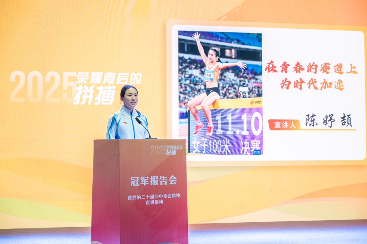 for (var i = 0,len = adKeys.length; i 為深入學習宣傳貫徹黨的二十屆四中全會精神,不斷弘揚中華體育精神,生動展現寧波體育健兒在全運會上頑強拼搏、勇創佳績的奮斗歷程,積極發揮冠軍典型的榜樣力量和引領作用,激勵全市體育系統為建設體育強市和現代化濱海大都市貢獻力量,12月3日,寧波市體育局舉行以“榮耀背后的拼搏”為主題的冠軍報告會。全運會寧波健兒代表,浙BA寧波隊球員,派駐紀檢監察組同志,以及市體育局系統黨員干部、運動員代表參加會議。奧運冠軍汪順,世界冠軍王昶,全運冠軍陳妤頡作主題宣講。全運冠軍葉金、余翔,國家田徑隊教練吳亞存,市體育科學研究所副所長沈異受邀開展沙龍訪談。 主題宣講環節,汪順、王昶、陳妤頡結合親身經歷,生動講述了在訓練中永不言棄的奮斗歷程,深情回顧了寧波健兒在賽場上中突破自我的光榮時刻。 汪順在本屆全運會上共摘得4枚金牌和1枚銀牌,全運會個人金牌總數達到19枚,創造了全運會66年歷史的新紀錄。他分享了26年游泳生涯中的點滴,講述自己以堅守戰勝迷惘與困境,以行動與熱愛不斷追求卓越的動人故事。汪順表示,人生就像混合泳,不可能每個階段都一帆風順,遇到困難,只有迎難而上,才能不斷突破自己。 王昶以《榮耀的背后:以拼搏之姿赴時代之約》為主題,分享了訓練與賽場中的汗水與堅持。王昶表示,每一塊獎牌的背后,都是一場與時間賽跑、與極限交鋒的較量,也是一段用汗水澆灌、以信念鑄就的征程,需要的是“不拋棄、不放棄”的堅守與擔當。 本屆全運會上,陳妤頡以2枚金牌和1個亞洲青年紀錄展現了寧波體育的青春力量。陳妤頡在分享中表示,為0.01秒的進步揮汗如雨,正是對“更快、更高、更強”的執著追求,因為想要超越,就必須沉下心來、戒驕戒躁,承受常人所不能受的磨礪,才能迸發出最璀璨的光芒。 體育事業的發展從來不是孤軍奮戰,而是一群人的同心協力、并肩前行。在沙龍訪談環節,葉金、余翔、吳亞存和沈異與現場觀眾分享了全運榮耀背后的團隊故事、拼搏路上的成長感悟和體育精神的傳承綻放。在最難熬的時刻,葉金摒除雜念、穩扎穩打,憑借扎實的技術與穩定的心態,在難局中拼下了勝利。余翔說,勝利從不是某一個人的高光,是一遍遍訓練里互相幫襯,是場上敢把后背交給隊友的那份信任,是整個隊擰成一股繩的勁兒才換來的。吳亞存揭秘了“小飛人”的成功秘訣:堅持以運動員為核心,在訓練上精細化、針對性、高效性,在心理上積極疏導,在生活中全面保障。沈異分享了作為隊醫與運動員相處的點滴,他們是伙伴也是朋友,互相理解彼此尊重,為了最高領獎臺的榮耀而并肩奮斗。 最后,在汪順的帶領下,全體與會人員共同倡議,將以冠軍為榜樣,汲取拼搏力量、凝聚奮進共識,共同推動體育事業高質量發展,為建設體育強市和現代化濱海大都市貢獻更大的力量! (鳳凰網寧波 詹天宇 王曉瓊 通訊員 羅霄瀟)