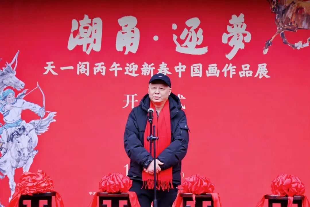 \u003c/p>\u003cp>1月31日,“潮甬·逐夢——天一閣丙午迎新春中國畫作品展”在天一閣博物院盛大開幕。這場以馬為核心元素的藝術盛宴,匯聚甬上名家何業琦、李羨唐與新生代藝術家王政綱的八十余件中國畫精品,為甬城市民獻上一道兼具文化深度與藝術溫度的新春賀禮。\u003c/p>\u003cp>本次展覽由寧波市文化廣電旅游局、寧波絲路東亞文化交流中心等主辦,寧波市天一閣博物院等多家單位聯合承辦。展覽以“潮甬·逐夢”為主題,巧妙將馬文化的精神內核與寧波城市發展的時代命題相聯結。觀眾在欣賞筆墨丹青之美的同時,能夠深切感受傳統文化與現代精神的同頻共振。\u003c/p>\u003cp>\u003cimg src=\"https://x0.ifengimg.com/ucms/2026_06/6CABB01F6245B1874209FCE93946C4E4382A03EA_size83_w1080_h721.jpg\" />\u003c/p>\u003cp>開幕式現場亮點紛呈,三位參展藝術家分別向天一閣博物院捐贈力作。何業琦捐贈《草原之花》,李羨唐奉上《驍騰有如此萬里可橫行》,王政綱則捐贈《紅色豐碑·薪火相傳》。三幅佳作以筆墨獻禮千年書樓,為天一閣的文化典藏再添亮色。\u003c/p>\u003cp>李羨唐、何業琦、王政綱分別分享了創作初心。他們表示,馬是十二生肖中極具生命力的形象,此次老中青三代藝術家聯袂,以馬為媒為丙午新春獻禮,也是用筆墨致敬傳統文化、致敬家鄉寧波的奮進力量。他們筆下的馬,著重凸顯“人性化”特質,觀眾能從中品味到善良、忠實、奮進、美麗的人心之美和奮進之情。\u003c/p>\u003cp>三位藝術家各展所長,以不同筆墨風格詮釋馬的精神內涵。李羨唐以“大寫意”手法畫馬,筆筆傳神,盡顯傳統中國畫的精髓,將內心澎湃情感融入筆墨之間。來自黑駿馬故鄉的王政綱,因自幼喜馬、愛馬、懂馬,其筆下的“蒙古馬”,無不展現出不畏艱難、堅韌不拔的奮進之姿。\u003c/p>\u003cp>\u003cimg src=\"https://x0.ifengimg.com/ucms/2026_06/DE1D3C36D513C849367EC3E8FDD40D7F324A9AEB_size112_w943_h1258.jpg\" />\u003c/p>\u003cp>\u003cimg src=\"https://x0.ifengimg.com/ucms/2026_06/A690BA8290F5A5DCA4E9482401B121279D7968BA_size244_w856_h1725.jpg\" />\u003c/p>\u003cp>\u003cimg src=\"https://x0.ifengimg.com/ucms/2026_06/F8C90F492D4DF08AEFD542F58D476042E070BA8C_size401_w1282_h2170.jpg\" />\u003c/p>\u003cp>展廳中,由何業琦繪人物、王政綱畫馬、李羨唐題款的合作作品《情醉馬背》格外引人注目。畫面里四匹駿馬形態各異,四位漢子前搖后仰、似醉非醉,雄健馬匹與歡悅漢子嬉戲周旋,剛柔相濟間,一幅快樂安康的新春圖景躍然紙上,引得觀展市民紛紛駐足品鑒。\u003c/p>\u003cp>\u003cimg src=\"https://x0.ifengimg.com/ucms/2026_06/FEAEB90E7DEBDDB5DB93D10619B1A8336DFFD5AD_size1596_w892_h2127.png\" />\u003c/p>\u003cp>\u003cimg src=\"https://x0.ifengimg.com/ucms/2026_06/0BC970ACC0FCD4CE38C47AB0317142D9669AB4AC_size160_w1080_h719.jpg\" />\u003c/p>\u003cp style=\"text-align: left;\">據悉,此次展覽將持續至3月3日。市民可前往天一閣,在千年書香的浸潤中,邂逅駿馬神韻,感受別樣的新春文化韻味。\u003c/p>\u003cp style=\"text-align: left;\">(鳳凰網寧波 賴剛)\u003c/p>","type":"text"}],"currentPage":0,"pageSize":1},"editorName":"謝思潔","faceUrl":"http://ishare.ifeng.com/mediaShare/home/548308/media","vestAccountDetail":{},"subscribe":{"type":"vampire","cateSource":"","isShowSign":0,"parentid":"0","parentname":"社會","cateid":"548308","catename":"鳳凰網寧波","logo":"https://d.ifengimg.com/q100/img1.ugc.ifeng.com/newugc/20201010/11/wemedia/5a68ca01a436772927546cfba868774629fcaea8_size286_w1600_h1600.jpg","description":"鳳凰網寧波頻道,每天向您傳播寧波最新最快新聞資訊。","api":"http://api.3g.ifeng.com/api_wemedia_list?cid=548308","show_link":1,"share_url":"https://share.iclient.ifeng.com/share_zmt_home?tag=home&cid=548308","eAccountId":548308,"status":1,"honorName":"","honorImg":"http://x0.ifengimg.com/cmpp/2020/0907/1a8b50ea7b17cb0size3_w42_h42.png","honorImg_night":"http://x0.ifengimg.com/cmpp/2020/0907/b803b8509474e6asize3_w42_h42.png","forbidFollow":0,"forbidJump":0,"fhtId":"80237075","view":1,"sourceFrom":"","declare":"","originalName":"","redirectTab":"article","authorUrl":"https://ishare.ifeng.com/mediaShare/home/548308/media","newsTime":"2026-02-01 16:45:32","lastArticleAddress":"來自北京"}},"keywords":"政綱,筆墨,寧波,李羨唐,藝術家,何業琦,天一閣,中國畫,駿馬,博物院","hasCopyRight":true,"sourceReason":"","isHubeiLocal":false,"interact":{"isCloseShare":false,"isCloseLike":false,"isOpenCandle":false,"isOpenpray":false},"__nd__":"ne883dbn.ifeng.com","__cd__":"c01049em.ifeng.com"};