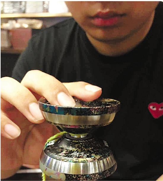 小伙自己設計的溜溜球。