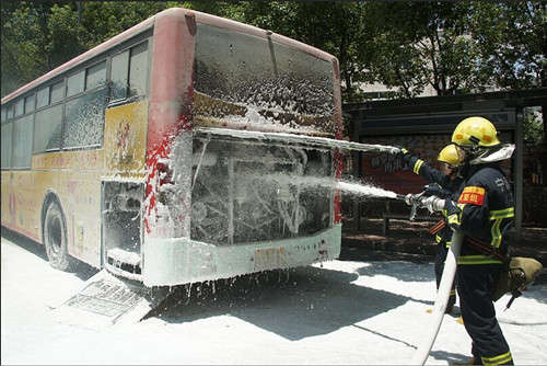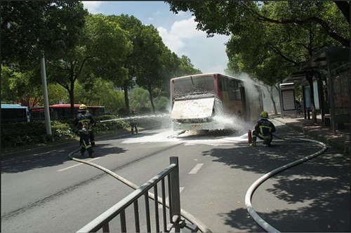 8月6日中午12時左右,寧波市眼科醫(yī)院門口有公交車著火。司機查看后,發(fā)現(xiàn)起火的是公交車后部引擎車廂,緊急疏散乘客后,司機取出車上滅火器滅火。幸好馬路對面有一家銷售滅火器材的小店,周邊市民也趕緊取了滅火器來救火。