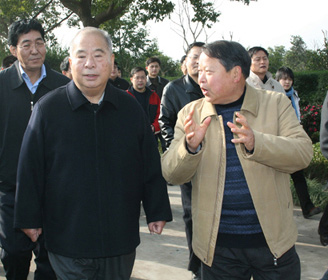 尉老興致勃勃地視察滕頭村(資料圖片)。