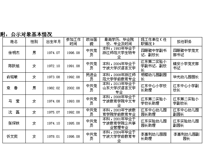 8月10日,寧波市教育局發布公告,對擬任命的8名書記、副校長進行公示。