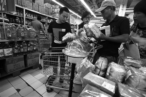 江東沃爾瑪超市,志愿者們在選取面包樣品