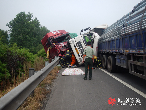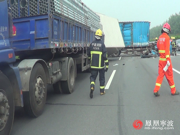 杭甬高速寧波段今晨4輛貨車發(fā)生追尾 致1死2傷