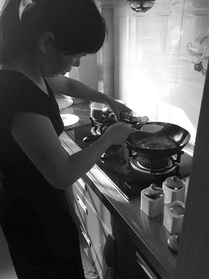 “為什么不去菜場呢?”記者很奇怪。“菜場的菜價格浮動很大,超市價格相對穩(wěn)定。所以客戶有代買菜的需求,我們會跟客戶協商去超市購買,做飯服務后,把超市小票放在桌子上就好。”聊著,方阿姨來到海鮮區(qū),挑了一條帶魚和一些對蝦,“這戶人家的小孩子今天想吃蝦,我準備回去做鹽水蝦。”之后,方阿姨來到蔬菜區(qū),挑了一個土豆、青椒和一把空心菜。買完菜就直奔麗景華府的客戶家。方阿姨把剛買的蔬菜放入洗菜池里清洗,然后把調料從櫥柜里拿出放到灶臺旁,將土豆洗干凈然后刨皮,在砧板上切成絲,青椒也一樣。方阿姨說:“他們的口味很清淡,也很喜歡吃我做的土豆炒青椒。”