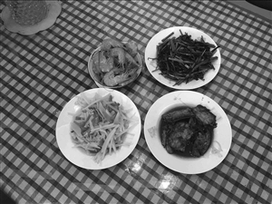 開火了。方阿姨先做了鹽水蝦,接著炒青椒土豆。待油溫上來,倒入鍋中,翻炒了幾下,再放水,蓋上鍋蓋后,又去洗帶魚,“今天要做紅燒帶魚。”剪好帶魚,土豆青椒剛好可以裝盤。麻利地洗鍋后,方阿姨又開始燒帶魚。放好調料后,就去洗了空心菜,把菜切好后,將帶魚裝盤,就做最后一道炒空心菜了。一共做了四個菜,夠一家三口吃了。