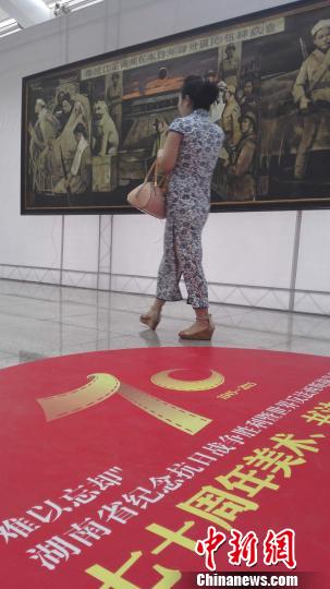 中新網長沙8月26日電(記者 劉雙雙)“難以忘卻——湖南省紀念抗日戰爭勝利暨世界反法西斯戰爭勝利70周年美術、書法、攝影作品展”26日在湖南省群眾藝術館啟幕,200余幅作品通過不同的藝術形式傾訴家國情懷,頌揚愛國英雄。