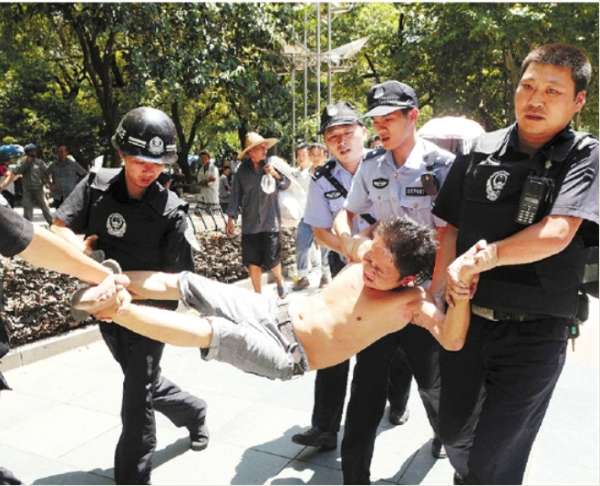 醉漢在杭州人民廣場揮菜刀 30多位民警兩分鐘內趕到
