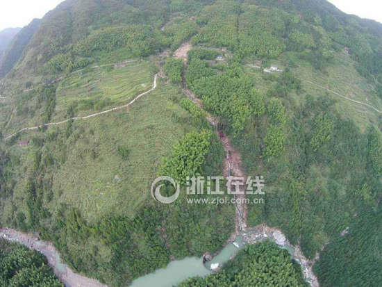 從直升飛機上看到,泥石流已經(jīng)淤塞了河道