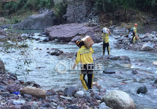 因為道路損毀,現(xiàn)在通過公路運輸把救災(zāi)物品送進入石柱村是不可能的,順溪鎮(zhèn)使用的辦法是雇人肩挑手提。但搬幾十斤的物資,走上十多公里路,也是很不得了的事情,現(xiàn)在能使用的最好方法,就是空運。