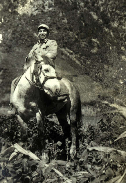 1952年,參加抗美援朝的志愿軍20軍58師172團機炮連副指導員王明才在朝鮮前線留影。(選自《王明才家庭影集》)