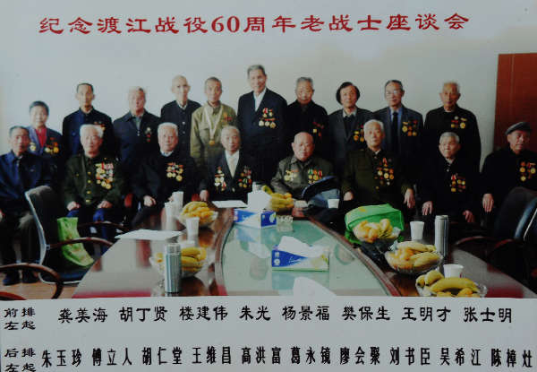 2009年5月,王明才(前右二)參加在義烏舉行的“紀念渡江戰役60周年老戰士座談會”。(選自《王明才家庭影集》)