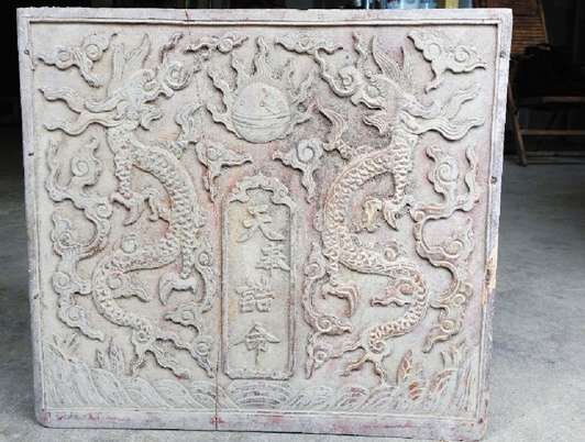但我們看到的并不是完整的盒子,只是幾塊散架的木板,其中一塊還碎成兩半。不過,木板上“奉天誥命”四字和雕刻的龍紋還非常清晰。
