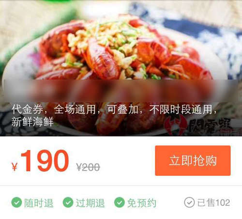 現在很多餐館、飯店都推出了團購券、代金券;比如說,顧客用88元購買一張代金券,就可以抵扣100元的餐費。