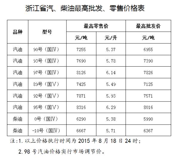 浙江在線杭州8月18日訊(浙江在線記者/陳鋮 編輯/馬麗紅)記者今天傍晚從浙江省物價(jià)局獲悉,8月19日0時(shí)起,浙江省汽、柴油最高零售價(jià)格每噸降低210和205元。
