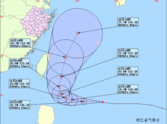 大暴雨明起襲擊浙西北“天鵝”登陸我國的可能性減小