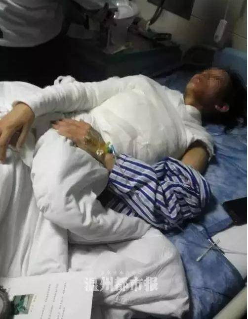 昨晚9點多,記者趕到解放軍118醫(yī)院,傷員已做過緊急處理住進(jìn)了病房。在住院大樓病房內(nèi),記者見到了被熱湯燙傷的林女士,此時的她全身已裹著紗布,但在家屬的手機(jī)里,記者看到了之前送醫(yī)時的照片,林女士的背部、脖頸以及手臂都已經(jīng)被燙紅脫皮,臉上好幾處還起了水皰。