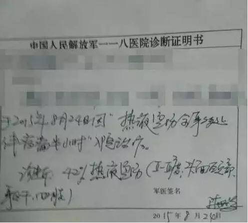 在醫(yī)院出具的診斷證明書上,記者看到醫(yī)生的診斷結(jié)果為:全身42%的面積被熱液燙傷,重度分別為2度到3度,燙傷部位為頭部、頸部、軀干及四肢。
