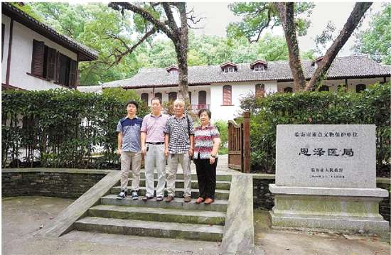 陳禾(右一)等人在恩澤醫(yī)院院史館前留影。陳耿攝