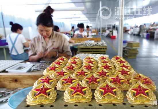 浙江在線記者了解到,這家企業成立于1983年,曾長期接收來自美國、俄羅斯、沙特阿拉伯等國家的軍用、警用徽章訂單,還參與過2007年解放軍換裝、2008年北京奧運會等重要活動。提到這次任務,工程師陳勇笑稱是“一場意外的驚喜”。去年工廠接到一項來自軍方的任務,要為儀仗隊戰士生產3000多套服飾和各類徽章,但具體用在什么場合,全是保密的。直到幾周前,陳勇才得知,原來這些產品是要被用于9月3日的閱兵儀式。