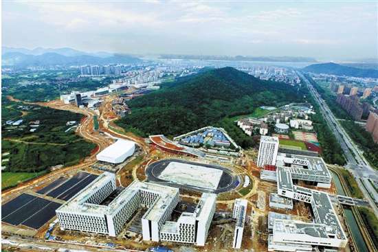 鳥瞰即將完工的浙江音樂學院(籌)。記者董旭明攝