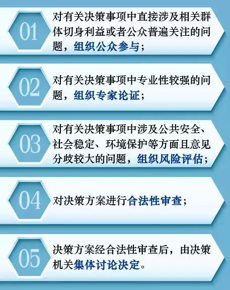 除依法應當保密或者為了保障公共安全、社會穩定以及執行上級機關的緊急命令需要立即作出決定的情形外,決策工作應當遵循下列程序規定: