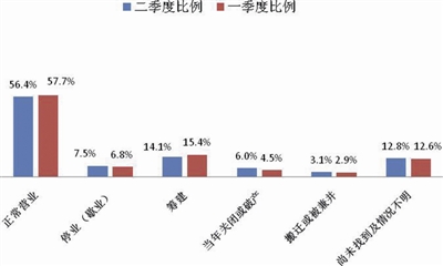 創業的不確定和高風險也能從調查數據中窺見一斑。截至6月末,64家調查單位處于“停業(歇業)”狀態,另尚有120家調查單位處于“籌建”狀態,51家調查單位“當年關閉或破產”。