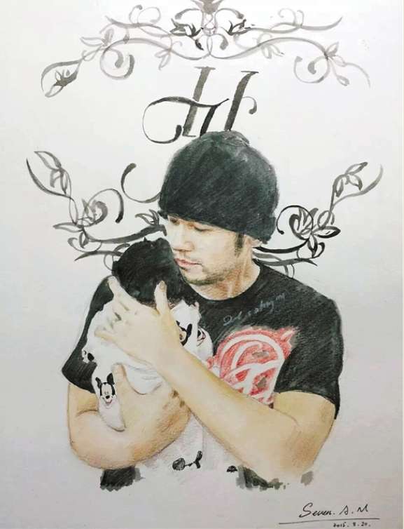 說起這幅畫的故事,還要從今年6月21日父親節說起。這天,翁晶琳畫了一幅周杰倫抱著女兒的肖像畫。她在網上找到周杰倫在臺北開的藤原豆腐店的地址,寄給了負責人Ken。Ken是昆凌的哥哥,周杰倫的妻舅。