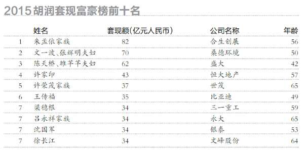 胡潤2015套現富豪榜 陳天橋、沈國軍等4位浙商上榜