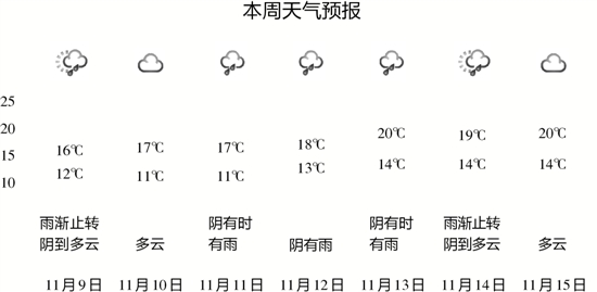 杭州天氣:本周多陰雨 明后天最低溫跌至11℃