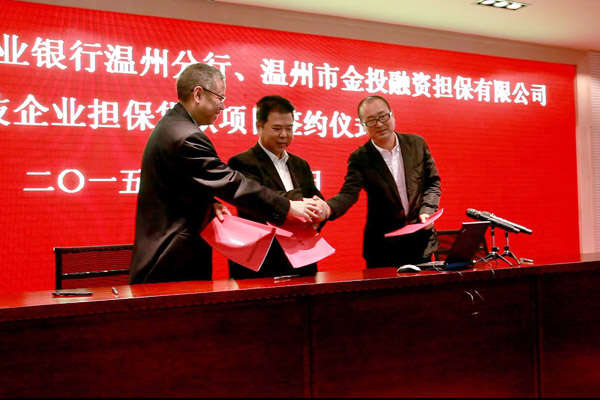 11月17日上午,旨在緩解溫州科技型企業融資難、助推溫州產業轉型的銀行貸款產品“科保貸”正式推出。在當天的推介會上,溫州市科技局、中國農業銀行溫州分行、溫州市金投融資擔保有限公司舉行三方合作簽約儀式。